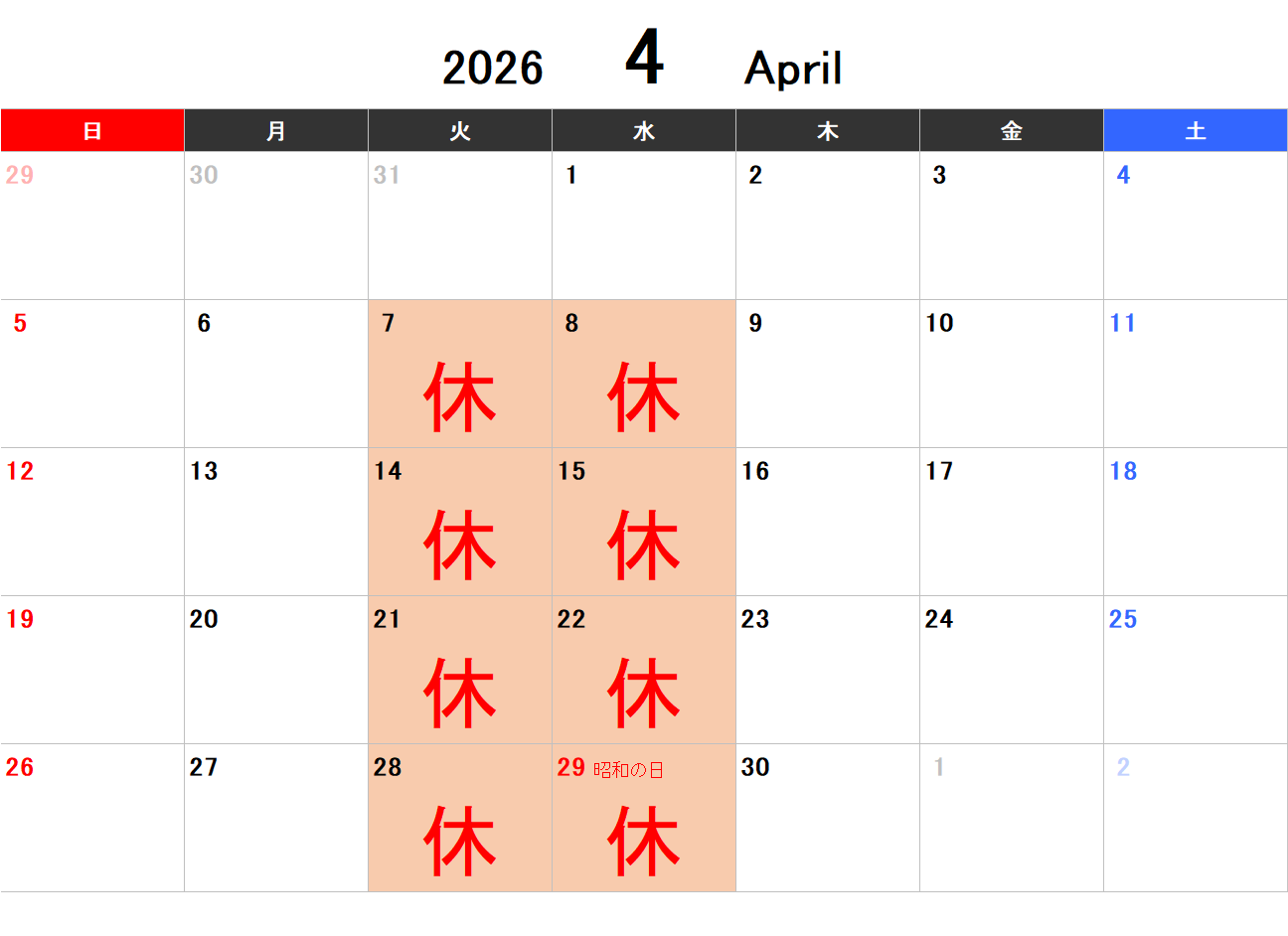 4月のご案内です。どうぞよろしくお願いいたします。